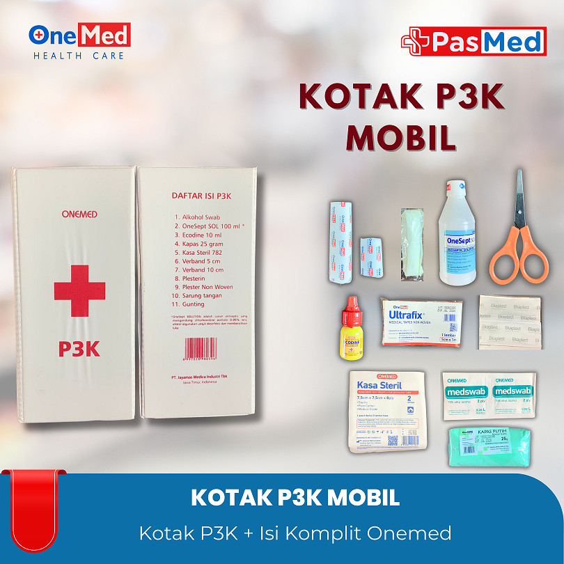 ONEMED – Kotak P3K + Isi (Set) / Kotak P3K Mobil + Isi